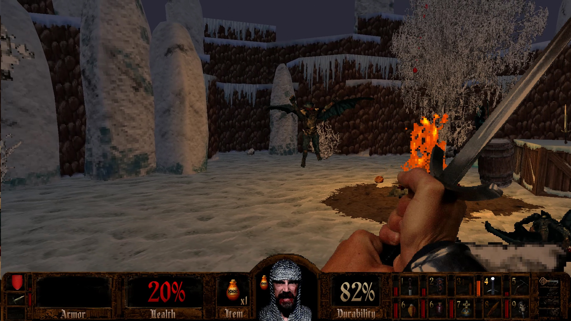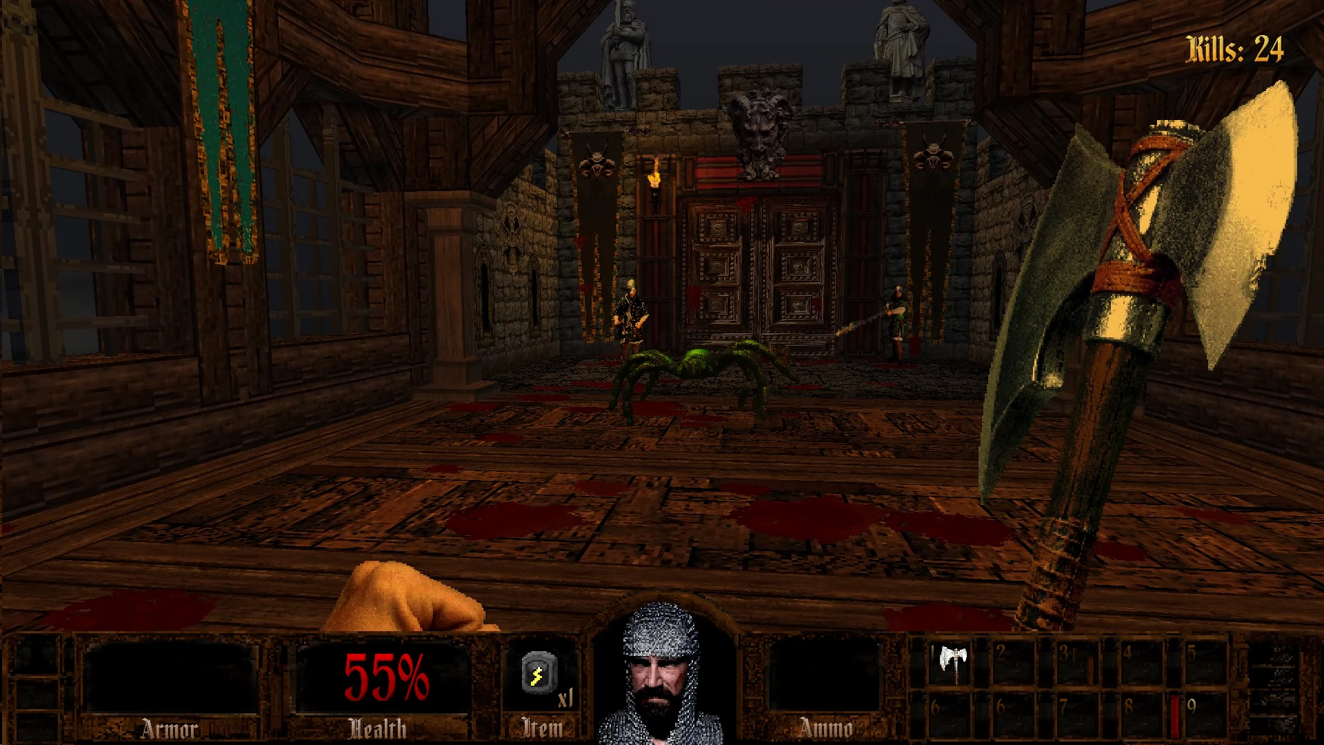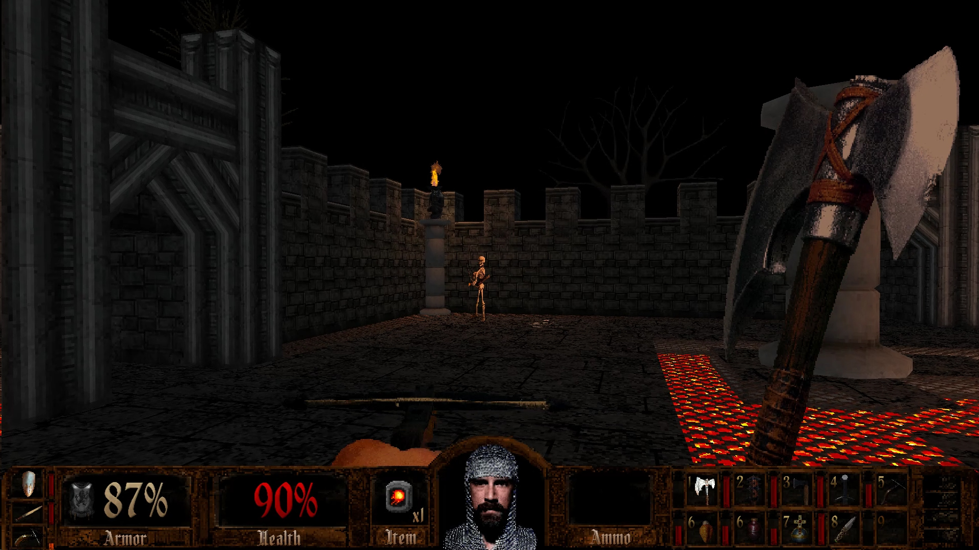 Arthurian Legends does feel like a game from the 90s. Exploration is encouraged, you’ll need to find keys to progress and access certain areas, and if you don’t pay attention, you can get lost. But I am happy to say no level ever felt super maze like. You will have to be mindful of certain hazards and there are plenty of secrets to find, many of which house resources, and you can also find exits to secret levels. Health can be replenished by food found in the environments and health potions, you can find and equip armor, and many items you acquire will be stored in your inventory. You want to be on the lookout for relics hidden in certain levels. These are special items that, once acquired, grant you a permanent bonus of some kind like increased melee damage and carrying capacity among other things.