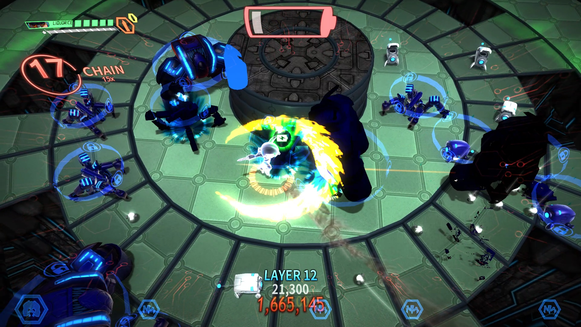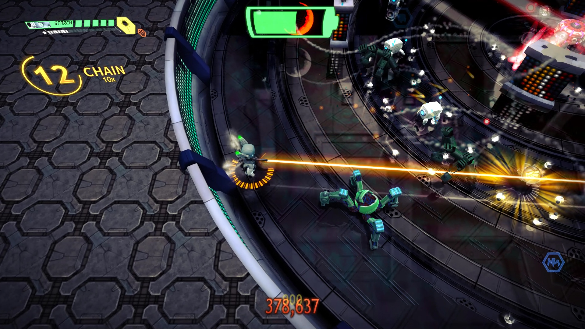 There isn’t much in the way of plot here. The game revolves around androids and their efforts to take back control of a space freighter from robots. The setup is conveyed in the opening of the campaign and the androids will interact with bosses but the campaign pretty much has you going from level to level with little exposition. There is a codex you can access which will give you more information on characters and enemies. The campaign is short and can be completed in a single sitting. But the game does come with plenty of replay value thanks to the scoring system, unlockable content, and numerous game modes including a Campaign+ mode which is the campaign again but more challenging.