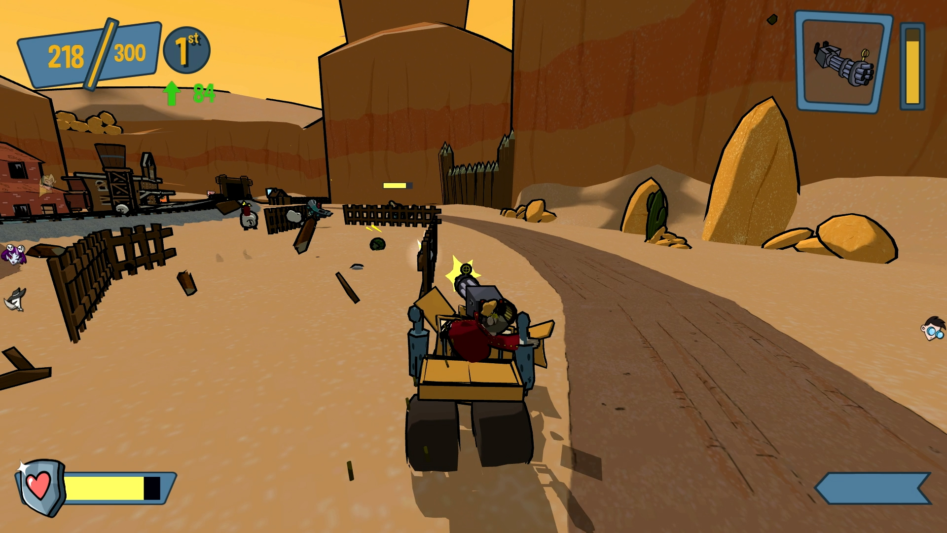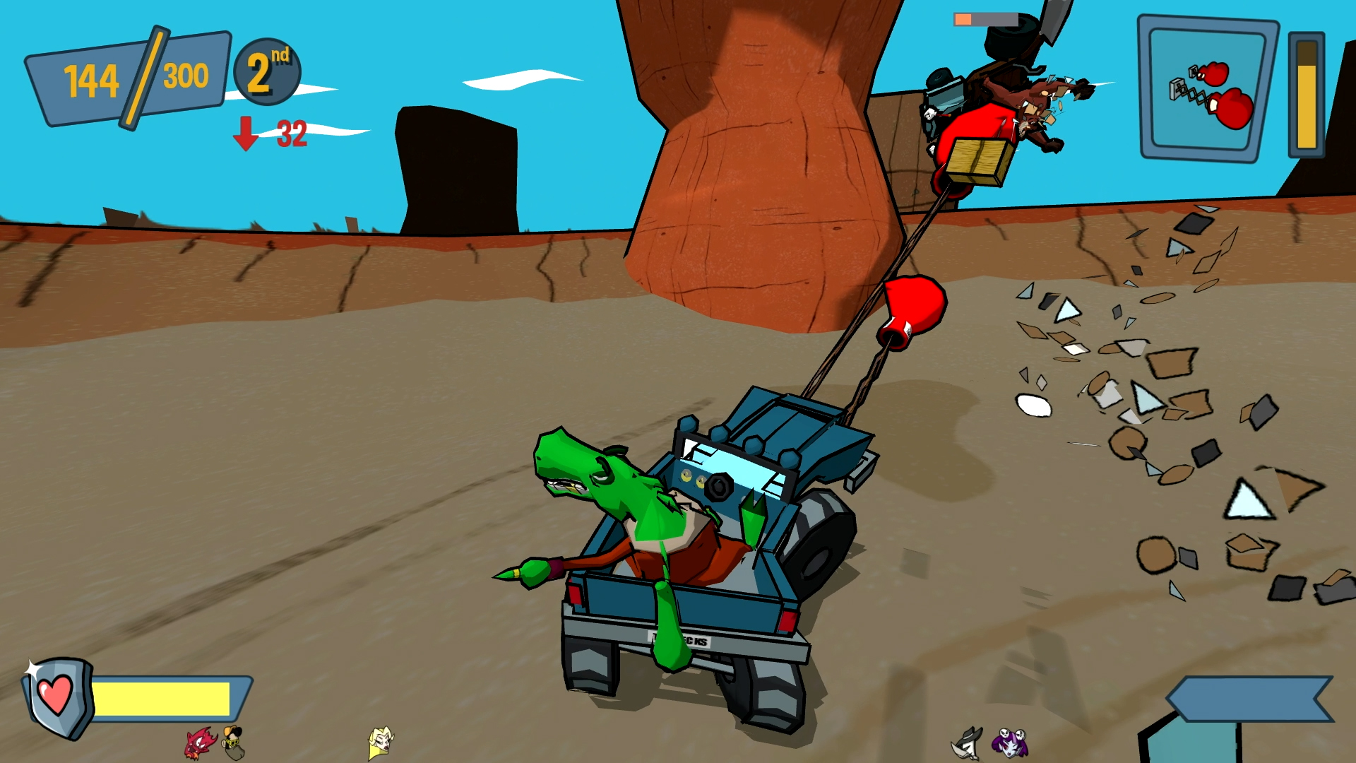 Cel Damage showcases a very colorful and cartoony presentation complete with cartoon physics. For example, when a vehicle turns it also flexes into the turning direction. Furthermore, vehicles can be flattened, frozen, and impaled with the proper animations and cartoony effects to match. In my opinion, the developer really nailed the cartoon aesthetic. The action is accompanied by silly dialogue shouted by the characters and backed by a soundtrack consisting of a variety of funky and rocking tunes. On the technical side, the game ran smooth for me and I encountered no major issues. I want to state again that I played this on a Series X.