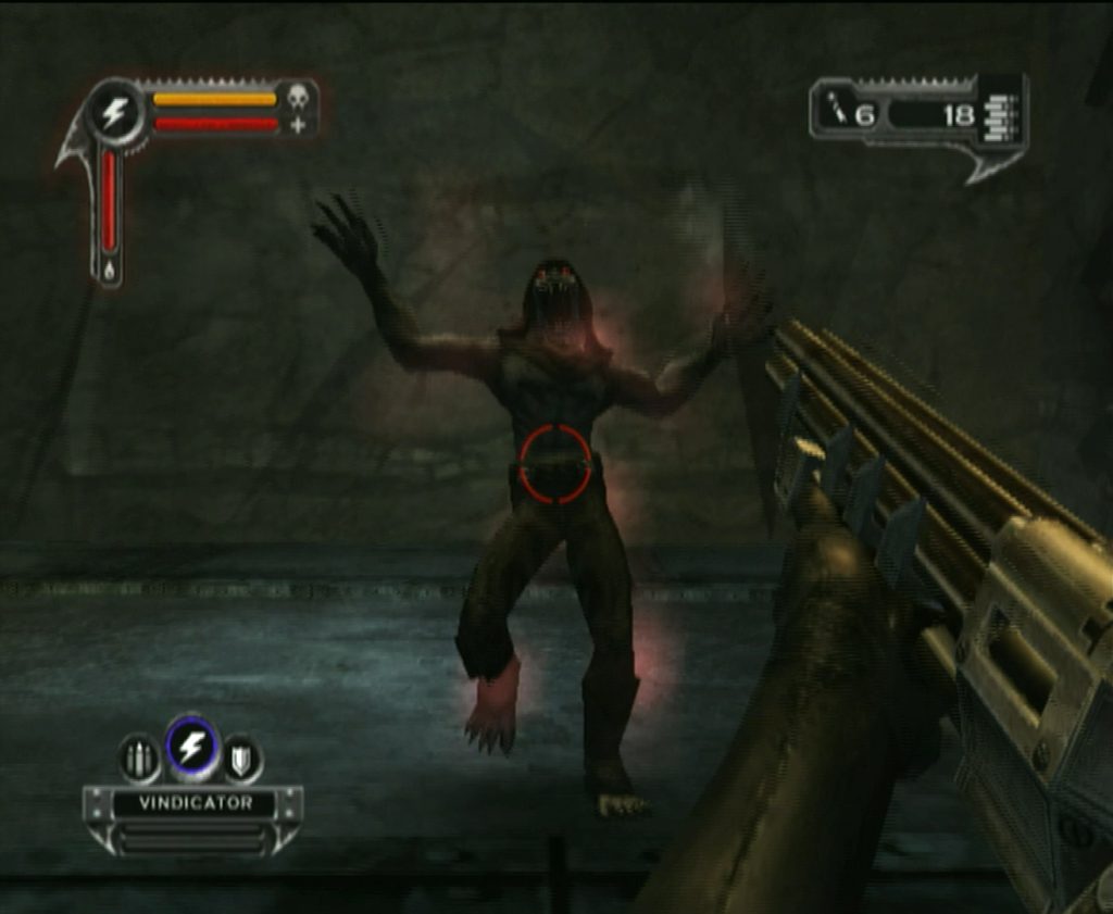 The gunplay looks and feels great thanks to solid visual effects, dismemberment, and good weapon feedback. The weapons do look cool and there’s a good variety at your disposal. You can only carry two at a time and the arsenal consists of typical weapon types for the genre including a handgun, rifle, sniper rifle, shotgun, rocket launcher, crossbow, and dynamite. Jericho can also utilize vampire abilities like blood shield, blood vision, and vampire jump. The blood shield is like regenerating armor, blood vision zooms and highlights enemies, and the vampire jump is basically a double jump. And he only has access to these abilities in the dark and shadows. As you kill enemies and absorb their blood clouds, you fill up your blood gauge and when it’s full, you can activate one of multiple powers for a limited time. The powers are categorized as good or evil and they all have their benefits. From making your weapons inflict more damage to turning enemies into allies, most are pretty fun to use and experiment with. This, combined with the solid gunplay and cool weapons and enemies make for a fun action-packed experience.
