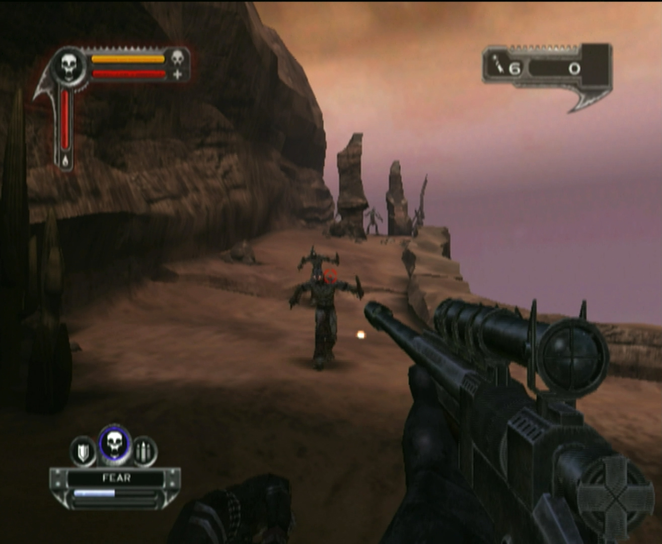Darkwatch is a straightforward and action-packed first-person shooter. You run through environments blowing away foes. It is a linear game with very little reason to explore. As you progress through the campaign, you’ll have to make decisions that align with either good or evil and the choices you make will determine what powers you have access to and the ending you see. This, along with the multiple difficulty levels and unlockable artwork and videos, does add some replay value to the single player experience. Darkwatch does come with a multiplayer component but I didn’t get the chance to check it out.