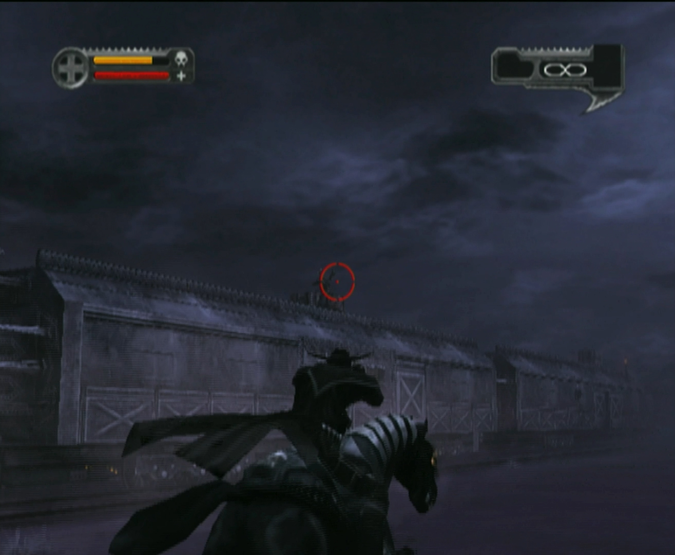 There’s a couple of features in Darkwatch that I feel could have been fleshed out further; the Darkwatch Citadel and the sun. Once you reach the Citadel in the story, you are given the option to choose what missions to complete. You’ll end up playing through all of them but it’s cool being able to pick and choose. The game actually tells you to explore the Citadel. Unfortunately, the Citadel area you have access to is very small and there’s no real reason to explore. You choose a mission, choose what weapon you want to start the mission with, and off you go. After completing the three missions, the whole mission choice thing is never seen again. It also doesn’t matter what order you complete them in. They have no affect on anything other than progressing the story. It would have been cool if choosing a mission rendered another inaccessible and altered the course of the story or a character’s attitude or something. Maybe even specific rewards could be granted for completing certain ones. This kind of design would force you to make choices that result in different outcomes.