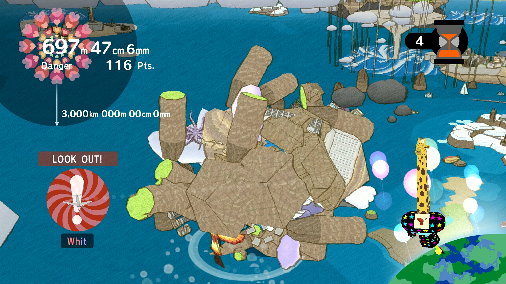 Despite Katamari Forever mostly feeling like a rehash, if you enjoy the previous games or the series gameplay in general, you’ll undoubtedly enjoy this. It’s the same Katamari gameplay you know and love, it just doesn’t do much of anything we haven’t seen before. However, it does introduce some new features which I actually welcome. The first is the hop. By flicking the controller up or by pressing a button, you can make your character and Katmari hop or jump which proves to be quite useful. The second new feature is the “King Shock” ability or what I call the magnet power-ups found in the stages and there’s two kinds. One will instantly suck in any surrounding objects that will stick to the Katamari and the other will attract nearby objects as you push the Katamari around but only lasts for a limited time. These are actually quite significant and I found they make it easier to achieve one hundred or more points in the stages.