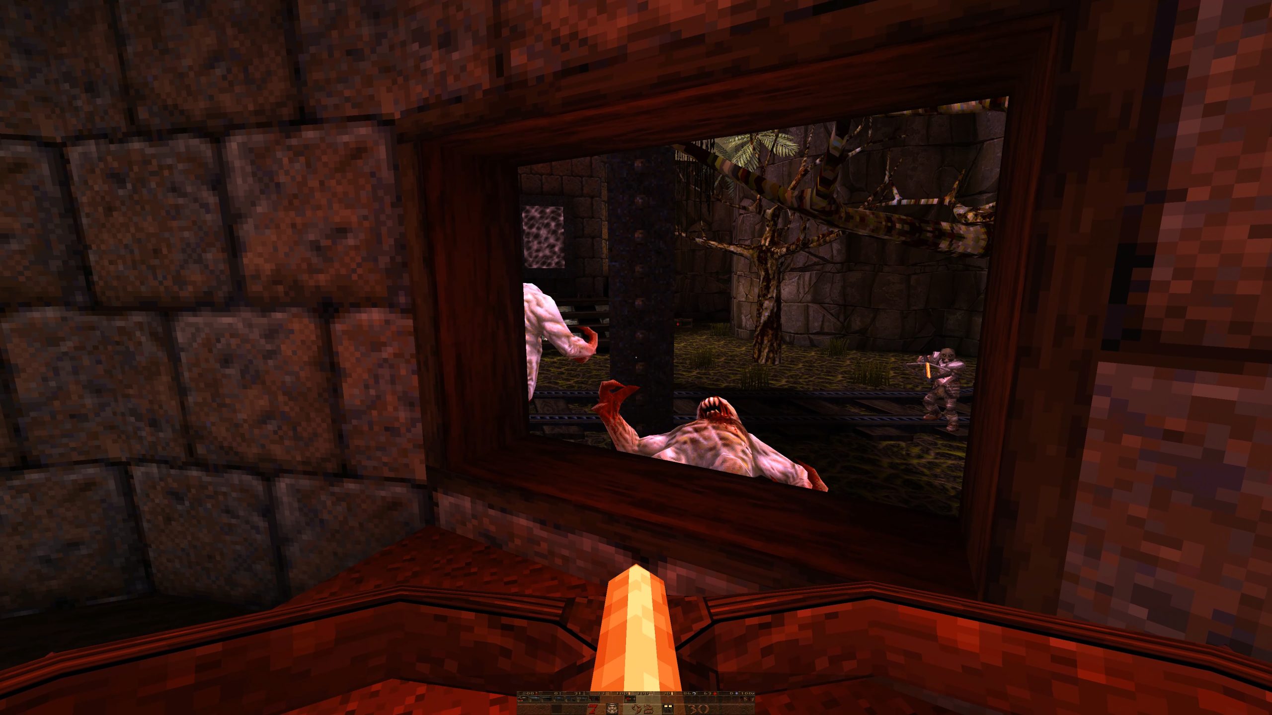 Quake: Mjölnir presents a world designed in a way that makes it easy for someone like myself to get lost in. I don’t mean “lost” as in unsure of where to go (although that can happen here) but “lost” as in absorbed into the world. I was basically wandering through maps and jumping through portals, exploring and slaying foes without any real knowledge of anything besides what’s offered in-game. Admittedly, I didn’t read through the manual before playing because I had found instructions for installing and running mods through Ironwail from another source so it was maybe a couple of hours before I opened the PDF. And even then, I quickly scrolled through it to find the names of enemies and weapons, missing some crucial information in the process.