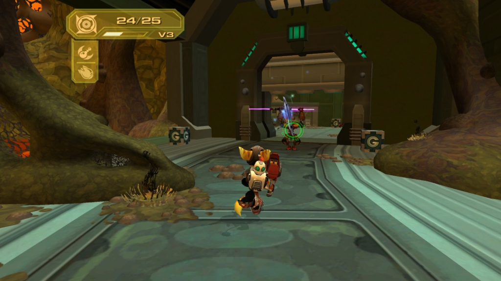 Much of the game has you running, jumping, and blowing enemies away. Some planets let you drive vehicles and depending on the mission or objective, you’ll get to fly around and blow shit up which is a lot of fun. But it’s not like the ship battles from Going Commando. I can’t say the game ever got too difficult but trying out all the weapons and becoming more powerful as you progress makes for a great and addictive time. You’ll engage different alien creatures, robots, aircraft, and the game is very action-heavy. Some planets let you assist the Galactic Rangers in battle missions where you have to complete various objectives for bolts. Unlike the previous games, planets do not feature their own sets of missions. The story will take you to planets to complete specific objectives. However, if you take the time to explore the planets, you’ll find Titanium Bolts, Trophies, and other items. You’re free to roam around each planet and can reference a map at any time and the planets do provide shortcuts or transports back to your ship.