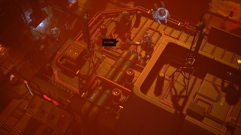 Ruiner showcases a slick presentation. Some of the character models have a plastic-like look when viewed up close but when viewed from a distance or the normal isometric perspective, everything looks great. The environments are detailed and the lighting and effects help give off dark and moody vibes which I feel is a good fit for the story and world on display. Personally, I think the audiovisual presentation nails the cyberpunk feel the developer is clearly aiming for. The soundtrack consists of ambient, techno, and synthwave tunes that not only fit the theme of the game but also add to the atmosphere. There’s some real kickass songs here. On the technical side, I’m happy to say I did not encounter any major issues.