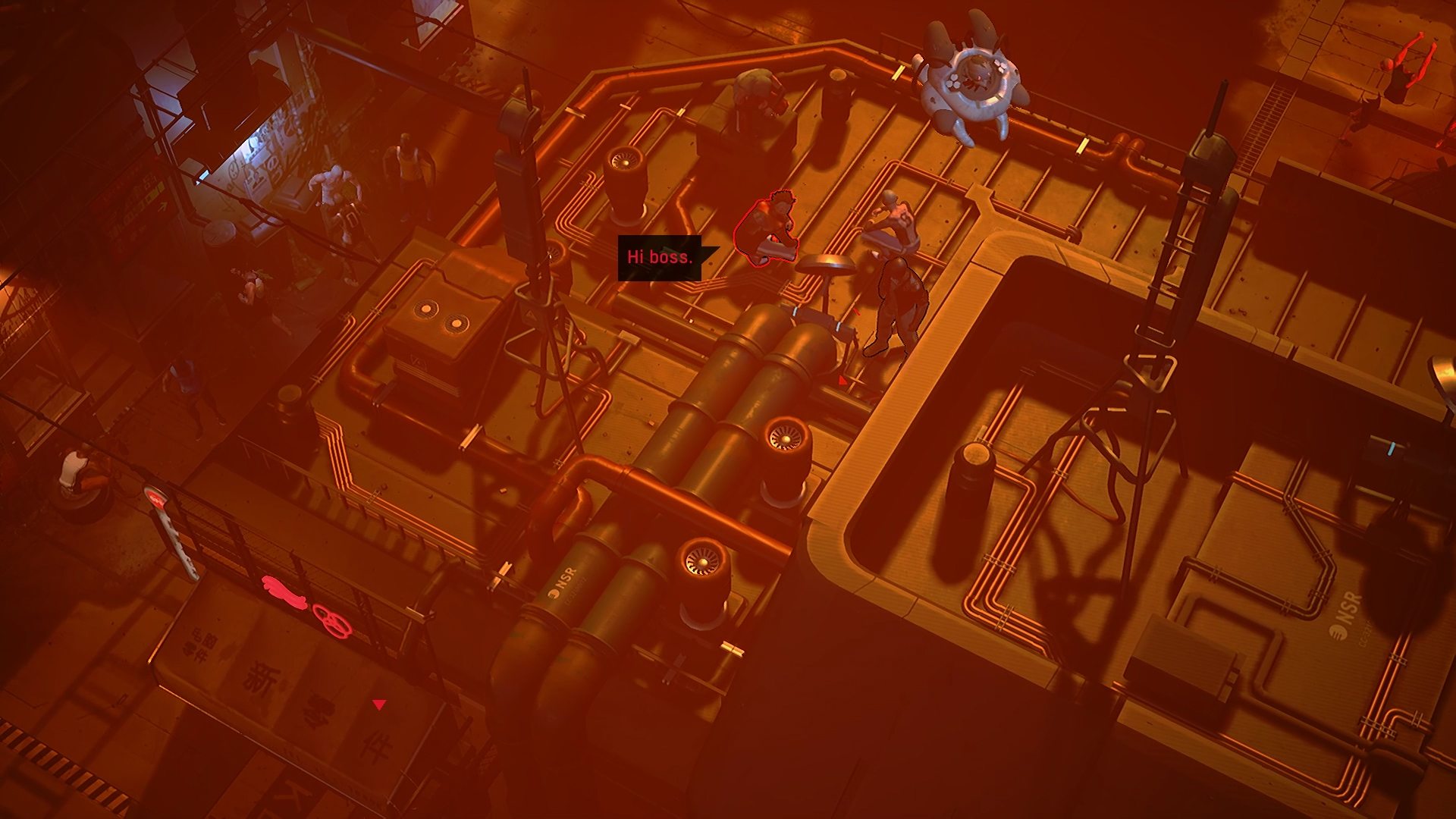 Ruiner can be described as a twin-stick shooter. I would even call it a story-driven twin-stick shooter. I tested playing with a keyboard and mouse and controller and preferred the controller, however both options are viable and work well in my experience. The game opens by throwing you into a level that teaches you the ropes and after you complete it, you end up in the city of Rengkok. Specifically, Rengkok South. While the levels are linear, the city area is open-ended to an extent. But very small. You can roam the streets and interact with NPCs and complete side missions (if you want to call them that) and initiate story missions which take you to different levels.