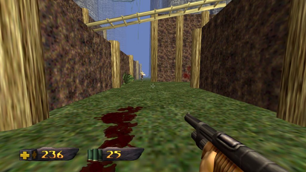 I love dinosaurs. Always have. And I would love to see dinosaurs in more games. There’s actually quite a few games out there with dinosaurs in today’s world but nothing quite like Turok: Dinosaur Hunter. At least not that I’ve played. Turok is a first-person shooter based on a comic book series and it released for the 64 and PC. When I think about dinosaurs in video games, Turok always comes to mind. That and Dino Crisis but they are very different types of games. Turok was actually one of the more popular games for the 64. It’s a sci-fi shooter with dinosaurs, aliens, and even robots. In my opinion, those are the ingredients for something awesome. Developed by Iguana Entertainment and published by Acclaim Entertainment, Turok: Dinosaur Hunter was released for Nintendo 64 and PC in 1997. A remastered version of the game by Nightdive Studios was released for PC in 2015, Xbox One in 2018, Switch in 2019, and PlayStation 4 in 2021. For this review, I played the PC version of the remaster.